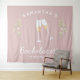 personalisierte Retro-Junggeselinnen-Abschied-Tapisserie in Rosa und Weiß mit Champagner-Gläsern ist perfekt als Junggeselinnen-Abschied Foto-Hintergrund. Feiern Sie Ihr Brautparty stilvoll mit dem passenden Champagner-Party-Thema in Rosa und Weiß, das perfekte Thema für die nostalgische Vintage 70er Braut und ihre Brautjungfrauen.