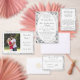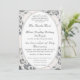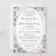 Dieses Design umfasst das Wesen der Eleganz. Ein Champagner-rosa Hintergrundbild zarter Spitzen umgibt Ihren Text, der in einem silberfarbenen Nuptial-Schriftart ausgestellt ist und von einem silberfarbenen Oval umgeben ist. Text folgt dem traditionellen katholischen Format für eine Hochzeitseinladung. Das gesamte Design ist durch eine silberne Grenze gerahmt. Ideal für eine traditionelle Hochzeit.