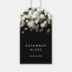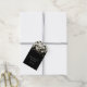 Chic Hänger Anhänger für Ihr Unternehmen verfügen über einen knalligen schwarzen Hintergrund mit einem oberen Rand von hellen Bughleuchten in Weiß- und Champagnertönen. Anpassen mit zwei Zeilen benutzerdefiniertem Text in Weiß. Die Backs sind weiß für Ihren zusätzlichen benutzerdefinierten Text oder Ihre handgeschriebene Nachricht.