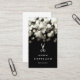 Einfaches und elegantes Design für die Visitenkarte von Friseursalons und Friseursalons mit weißem und Champagner-Kronleuchten auf einem knusprigen schwarzen Hintergrund mit modernen weißen Schriftzügen. Personalisieren Sie Ihre Daten mit zwei Textzeilen auf der Vorderseite unter den Scherenpaaren eines Stylisten und fügen Sie Ihre Kontaktdaten auf der Rückseite hinzu.