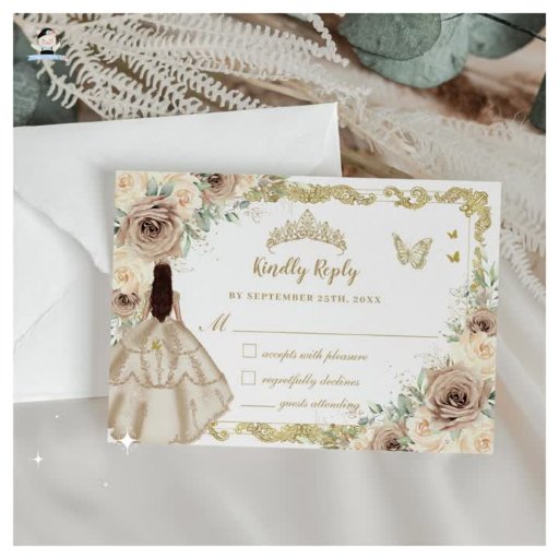 Champagner Cream Floral Sweet 16 Quinceañera Foto Einladung