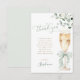 Versenden Sie einen Hauch botanischer Schönheit und herzlichen Dank mit diesen exquisiten Dankeskarten zur Brautparty. Das Design zeigt eine fesselnde Illustration eines Champagnerglases, elegant mit einem salbeigrünen Band gebunden und umgeben von einem Kranz aus frischem Eukalyptus. Die zarte Schrift und die natürliche, luftige Ästhetik bieten einen perfekten Hintergrund für Ihre persönliche Dankesbotschaft. Diese Karten sind eine wunderbare Möglichkeit, die Liebe und Unterstützung, die Sie während Ihrer Brautparty erhalten haben, zu würdigen.