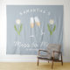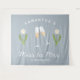 Frau personalisierte Retro-Junggeselinnen-Abschied Tapisserie in blau-grün und weiß mit Champagnergläsern und einer weißen Tulpe ist perfekt als Junggeselinnen-Abschied Foto Hintergrund. Feiern Sie Ihr Brautparty stilvoll mit dem Thema Champagner-Party in blau-grün und weiß, das perfekte Thema für die nostalgische Vintage 70er-Braut und ihre Brautjungfrauen.