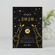 Pop die Blase! Die Silvesterabende-Party Einladungen sind mit zwei Champagner-Flaschenbildern auf schwarzem Hintergrund mit Goldfolie und weißen Sternen geschmückt.
