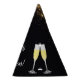 Zwei Champagner-Gläser zum Feiern auf diesem markanten New Year's Eve Party Papier Party Hut. Imitate goldene Konfetti duschen vor einem reichen schwarzen Hintergrund auf dem Hut. Der Text lautet "Feiern zum Neujahr", aber Sie können das nach Belieben ändern. Verfügbar mit passenden Produkten.