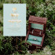 Champagnerturm. Gold-Text. Einladung. Türkisfarbener Hintergrund