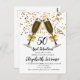 Champagnergläser und Goldbänder mit goldenen Konfetti auf schwarz mit weißer Schrift, 50 und fabelhafte Geburtstagsfeier Einladung. Ein trendiger Gold und Weiß laden mit einer modernen Schrift ein. Gläser aus Sekt. Personalisieren Sie Ihre Party-Informationen. Ideal für Männer oder Frauen. Für jedes Alter individuell anpassen. 30, 40, 60, 70, 80 und mehr.