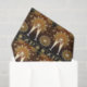 Silvester-Papiertaschentuch mit Party-Atmosphäre. Goldene Champagnerflöten, die mit goldfarbenen Feuerwerken zusammenkleben, die überall explodieren. Jugendstil / Art Deko Stil Design.