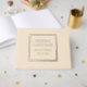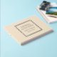 Solide Champagnerfarbe, einfaches Hochzeitsgast-Buch mit stilisierten Foliendrucken innerhalb eines quadratischen Rahmens, der den Namen der Braut und des Bräutigams sowie das Hochzeitdatum in Ihrer Wahl der Farbfolie enthält. Hier in Silberfolie gedruckt. Wählen Sie Ihren Gastbuchstil aus.