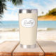 Verschenken Sie Ihre Hochzeitsjury mit diesem trendigen und personalisierten, rostfreien Edelstahl, Thermalwäscher mit ihrem Namen in silbergrauer Farbe bedruckt, stilisiert Drehbuch in einem weißen ovalen Design. Die Hintergrundfarbe ist eine Champagnerfarbe. Personalisieren Sie Ihren Wärmeleiter, indem Sie den Namen der Brautjungfrau mit dem gewünschten Namen bearbeiten und ersetzen. Erhältlich in vielen beliebten Hochzeitsfarben.