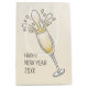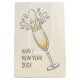 Neujahrsgeschenktasche mit Bläschen aus einem glänzenden Champagner-Glas für das neue Party. Design in einem einfachen, coolen und modernen Stil.