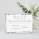Das Design zeichnet sich durch einen eleganten Hintergrund des Bildes von weißer Spitze vor einem Champagner-rosa Hintergrund aus. Nach dem richtigen Format für eine Hochzeitskarte wird der Text in einem silberfarbenen Schriftart angezeigt. Kopf, Untertitel und Anfragezeile werden in einem eleganten Nuptial Schriftart angezeigt. Unter individualisierbarer Unterüberschrift wird die französische Bedeutung der Buchstaben dargestellt. R.S.V.P. Namen von Braut & Bräuche werden unten im selben Nuptial-Schriftart dargestellt. Entworfen, um sich mit der Champagne-Pink Lace Katholischen Hochzeitssuite zu koordinieren.