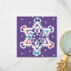 Dieser Entwurf zeigt eine Schneeflocke, die dreidels einschließt. Der Schneeflockeentwurf integriert das Chanukka-Motiv in einen sechs-spitzen Davidsstern Form. Es ist Set gegen einen Nachtzeithimmel mit kleineren Schneeflocken und fallendem Schnee. Das Thema stellt die Winterjahreszeit dar, während deren Chanukka fällt.