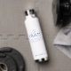 Chaos Coordinator Blue Calligraphy Script Name Insulated Water Bottle bietet ein einfaches Design des Textes "chaos koordinator" in einem lustigen blauen kalligraphischen Skript mit Ihrem personalisierten Namen unten. Perfektes Geschenk zum Geburtstag, Weihnachten, Muttertag, Lehreranerkenntnis für die fleißige Mutter, Lehrerin, Sportteam-Manager oder Arbeitsleiter. Entworfen von © Evco Studio www.zazzle.com/store/evcostudio