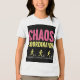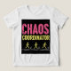 The "Chaos Coordinator" design is a bold and playful graphic that combines vibrant colors, dynamic typography, and simple iconography to convey a sense of controlled chaos. The design features the words "CHAOS COORDINATOR" in striking pink and yellow text against a black background, emphasizing contrast and energy. Below the text, three stick-figure runners add movement and humor, symbolizing the idea of managing disorder with purpose and enthusiasm.