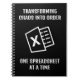 Die thematische Spreadsheet-Abdeckung dieses Notebooks wird ein Lächeln auf das Gesicht des Excel-Gurus in Ihrem Kreis setzen: "Chaos in Order One Spreadsheet on a Time umwandeln".