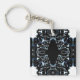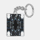 Chaotic Abstract Blue on Black and White Fluid Art Schlüsselanhänger