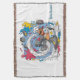 A bold, humorous cartoon illustration featuring a frantic chef with a large mustache, wearing a classic white toque and uniform splattered with bright primary colors. He struggles to control an oversized gray stand mixer as an explosive burst of white batter or frosting erupts violently from the bowl. Vivid splashes of magenta, cyan, and yellow paint fly across a light blue background, while overturned mixing bowls float mid-air, amplifying the sense of chaos. Rendered in a graphic, high-contrast style with thick black outlines, this energetic artwork captures culinary mayhem with playful, comedic flair.