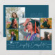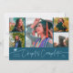 Modern and simple graduation announcement photo card featuring 5 photos on the front and 1 on the back. The hand written script text says "Chapter Complete." Add the graduate's name, information, and message to personalize this card. Teal color.