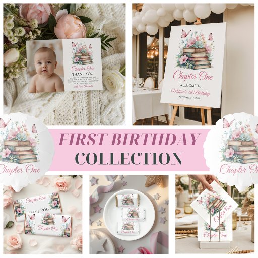 Chapter One 1st Girl Book Theme First Birthday Pappteller