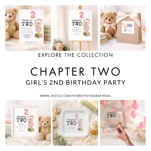 Chapter Two Teddy Bear Book Girl 2nd Birthday Pink Einladung