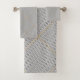 CHARCOAL GOLD ABSTRACT CIRCLES GRID BATH TOWEL SET