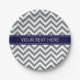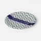 Charcoal Grey Lg Zickzack Navy Blue Name Monogram Pappteller
