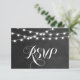 Moderne RSVP Antwortkartengestaltung mit schlichter, eleganter, leuchtender, auf der Oberseite hängender Saitenleuchte und einem eleganten Mix aus modernen und kalligraphischen Script-Schriftart auf einem Imitat mit Aquarelltextur. Ein schlichtes und stilvolles Design, perfekt für den Sommer! Klicken Sie auf die Schaltfläche IT CUSTOMIZE, um Schriftart anzupassen, Text zu verschieben und Ihr eigenes einzigartiges Einladungs-Design zu erstellen.