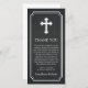 Vielen Dank für Ihre Karte für einen Gedenkservice mit Ihrem persönlichen Dankeschön Nachricht in weißem Text vor einem kohlehaltigen Hintergrund unter einem weißen Kreuz gedruckt.