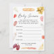 Mit dieser "Baby Guesses"-Spielkarte mit charmanten Aquarellelementen wie Brot, Käse, Obst und Babyflaschen können Sie Ihre Babydusche noch etwas unterhalten. Die Gäste können das Geburtsdatum, die Zeit, das Gewicht und die Länge des Babys erraten. Eine stilvolle und interaktive Ergänzung zu Ihrem Fest, perfekt für Boards und Flaschen oder eine Dusche zum Thema Essen.
