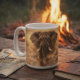 Designed as a panoramic artwork, the scene wraps smoothly around the mug, immersing the viewer in motion and atmosphere. Soft blended edges and earth-toned textures allow the design to integrate naturally into the ceramic surface, avoiding harsh borders and creating a refined, gallery-style finish.