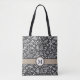 Karkohle Grau und Weiß rustikale Winter Botanische Blätter mit klassischer Monogram Tote Bag.
