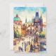 Diese Postkarte zeigt ein Aquarellbild der Karlsbrücke in Prag, Tschechien.