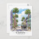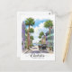 Ein malerisches Aquarellbild zeigt eine Pferd-gezeichnet Kutsche an einer sonnigen Kopfsteinpflasterstraße, die von bunten Gebäude und Palmen gesäumt ist.