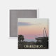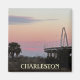 Dieser Magnet zeichnet sich durch ein Foto Sonnenuntergang über dem Cooper River in Charleston, SC mit der Ravenel Bridge und einen Palmetto Baum in Silhouette aus.