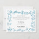 Diese reizvolle Einladungskarte für die Hochzeitsfeier zeigt die von der Innenstadt Charleston, South Carolina inspiriert Illustrationen, darunter Palmenbaum und Mondmond, die alte Cooper-Brücke, Ananas, MeerMöwen, Pelikane, Garnelen, Meeresschildkröten, Krabben und Garnelenboote. Teil der Charleton Toile Border in Blue Hochzeitssuite. Alle Texte können bearbeitet werden. Entsprechende Designs sind verfügbar.