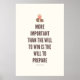 Dieses Zitat verkörpert eine grundlegende Wahrheit über den Erfolg in jedem Unterfangen. Obwohl der Wille zum Sieg zweifellos mächtig ist, bestimmt letztlich das Bekenntnis zu gründlicher Vorbereitung das Ergebnis. Der Wille zur Vorbereitung beinhaltet, sich dem unerbittlichen Streben nach Wissen, Kompetenzentwicklung und strategischer Planung zu widmen. Es betont, wie wichtig es ist, durch harte Arbeit, Disziplin und die Liebe zum Detail eine solide Grundlage zu schaffen. Ohne eine angemessene Vorbereitung wird der Wille zu gewinnen zu einem leeren Ziel. Dieses Zitat dient als wichtige Erinnerung, dass Erfolg nicht nur ein Produkt des Ehrgeizes ist, sondern das Ergebnis der bewussten und zielgerichteten Bemühungen, sich auf die vor uns liegenden Herausforderungen vorzubereiten. Ob im Sport, in der Wissenschaft oder in anderen Bereichen: Wer die Vorbereitung priorisiert, ist besser gerüstet, um sich Widrigkeiten zu stellen und siegreich zu werden.