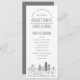Ein Hochzeitsprogramm zum Thema Deko für eine Hochzeit in Charlotte, North Carolina. Diese Karte zeigt die einzigartige Skyline der Stadt mit ihrem Namen darunter. Hier können Sie sich unter Ihren Hochzeitstag-Informationen in einem passenden, offenen Stil entspannen. Auf der Rückseite ist eine weiche nickelgraue Farbe mit mehr Hochzeitsdetails in weißem Text, um die Vorderseite zu ergänzen. Eine stilvolle Art, außerhalb der Stadt ansässige Gäste willkommen zu heißen und ihnen hilfreiche Informationen über Ihre Hochzeitsfeierreihe zu geben.