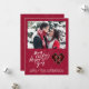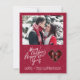Elegantes Design mit einer eleganten, modernen Typografie "Frohe Weihnachten und Glück im neuen Jahr", auf rotem Hintergrund mit verblassten Schneeflocken, rotem Büffelherz für das Jahr und einem Foto. Verwenden Sie das Tool Anpassen, um Ihr eigenes Foto (Paar, Kinder, Foto, Haustier-Foto) hinzuzufügen, den Familiennamen und das Jahr zu ändern. Mehr Ideen in meiner Weihnachts-Foto-Sammlung.