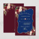 Charm Navy Blue Burgundy Floral Gold Wedding RSVP Karte