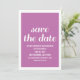 Ankündigung Datum freihalten in strahlender Fuchsia und weiß mit einem skurrilen Typografie-Design. Diese trendige und moderne Save the Date laden Sie ein, sich mit Ihren Hochzeitsdetails ganz einfach und individuell zu gestalten. Klicken Sie für weitere Anpassungsoptionen auf die Schaltfläche Anpassen.