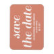 Charm Save the Date Magnet in orange und weiß mit einem whimsical Typografie-Design. Diese trendige und moderne speichern Sie den Datums-Magnet ist einfach, um Ihre Hochzeitsdetails anpassen. Klicken Sie für weitere Anpassungsoptionen auf die Schaltfläche Anpassen.