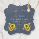 Einzigartiges Design mit der Typografie "I DO, ME TOO" in zwei Herzen, Aquarellsonnenblumen, auf einem alten blauen denim Hintergrund. Verwenden Sie das Tool Personalisieren, um Ihre Informationen hinzuzufügen. Besuchen Sie bitte meine Rustikale Land ALL EVENTS GRILLEN Collection.