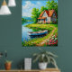 Charmante Hütte am See mit einem Boot Poster