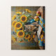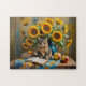 Charmante Katze mit SonnenblumenBouquet Puzzle