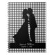 Stilvolles Hochzeitszeichen in Notizbuch gemacht in einem schwarz-weißen Gingham-Muster. Die Grafik einer Vintagen schwarzen Silhouette eines küssenden Paares schmückt die Mitte, darunter ein schwarzes Band für Text. Personalisieren Sie den weißen Text für Ihre Hochzeit. Die passenden Hochzeitsprodukte sind erhältlich.