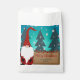 Die Weihnachtsgeschenktasche ist perfekt für Ihre Leckereien. Das Design zeichnet sich durch einen absolut charmanten Weihnachtsbrunnen aus, der mit einem gewaltigen, rot-weiß gestreiften Hut und einem aquamarinen Gradientenhimmel mit einem Set versehen ist. Er steht inmitten eines spielerischen Waldes aus stilisierten, silbernen immergrünen Bäumen, während große, weiche Schneeflocken abdriften. Ein rustikales, holzgeschmücktes Schild, das von einer festlichen rot-grünen Jakobsmuschel umgeben ist, bietet den zentralen Platz für Ihre personalisierte Botschaft - perfekt bewiesen mit "Frohe Weihnachten" und einem Familiennamen.