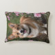 "Charmanter Begleiter: Ein Corgi in einem rosa Ros Dekokissen