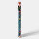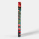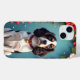 Der charmante Hund sitzt in einer spielerischen Pose, umgeben von einem dekorativen Blumenrahmen. Der Hund hat einen überwiegend weißen Mantel mit schwarzen Flecken und markanten braunen Markierungen auf seinem Gesicht. Er trägt einen roten Kragen mit einer Glocke, die sein zauberhaftes Aussehen noch verstärkt.