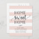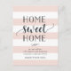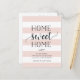 Bezaubernde und moderne Ankündigungen ließ Freunden und Familie von Ihrer neuen Zuhause Sweet Zuhause! Das Design ist mit einem subtilen gestreiften Hintergrund in Rosa und Weiß, mit "Zuhause Sweet Zuhause" in weichem schwarzem Skript und Blocktypografie. Verwenden Sie die Vorlagenfelder, um Ihr benutzerdefiniertes Intro, Ihre neue Adresse und Ihre Namen hinzuzufügen. Informationen wiederholt sich auf der Rückseite mit Platz für die Adressierung des Empfängers.